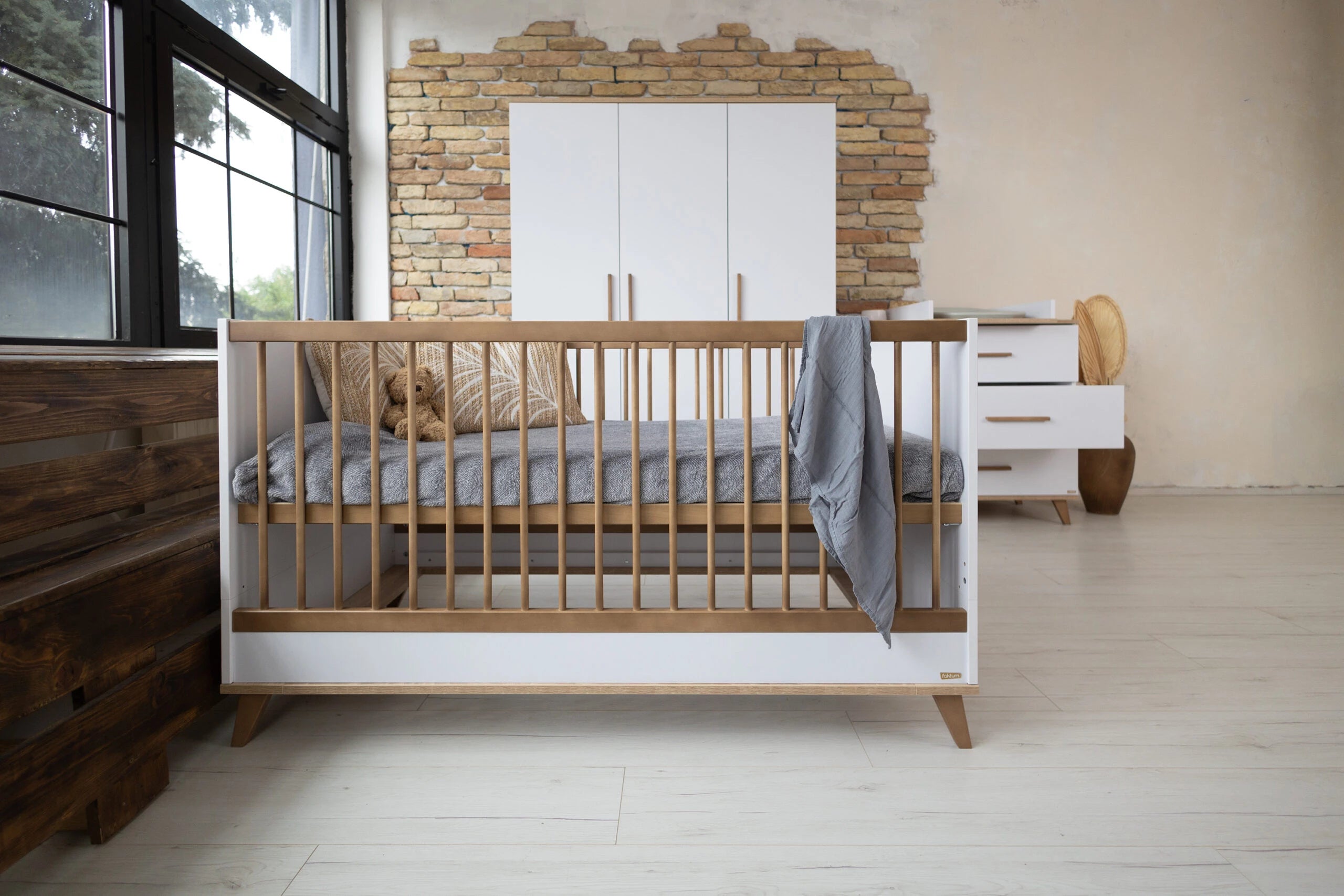 Designed to convert into a junior bed, the Flip Bed grows with your child, offering a stable and durable solution that lasts for years. Its combination of solid wood and high-quality panels ensures long-term strength and a premium aesthetic for any nursery.