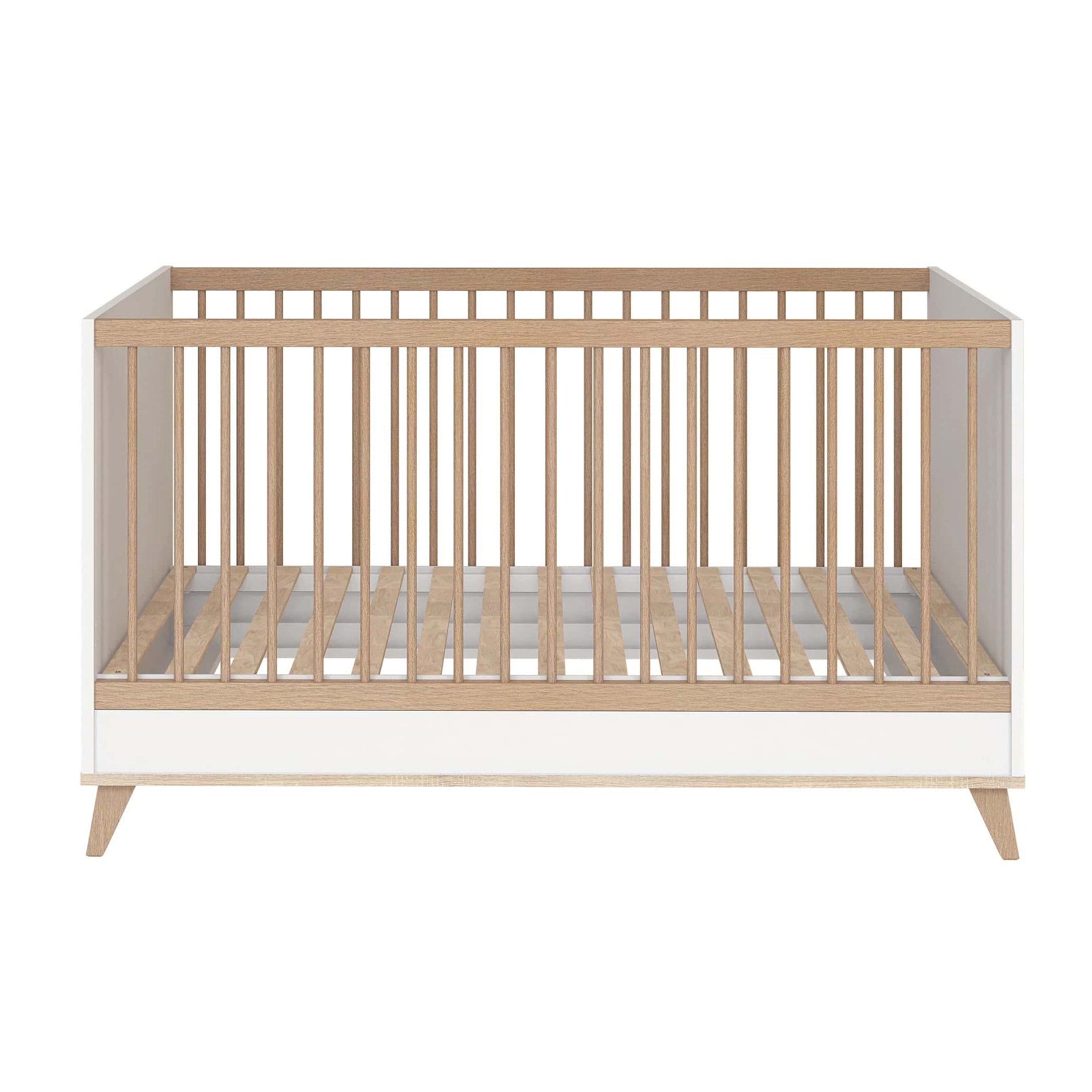 The Flip White & Oak Bed 140×70 combines modern design with long-term functionality, providing a safe and comfortable sleeping space from birth through early childhood. The mattress base is adjustable to three heights (22.2 cm, 35.2 cm, 52.2 cm), allowing you to set the bed according to your baby’s developmental stage.