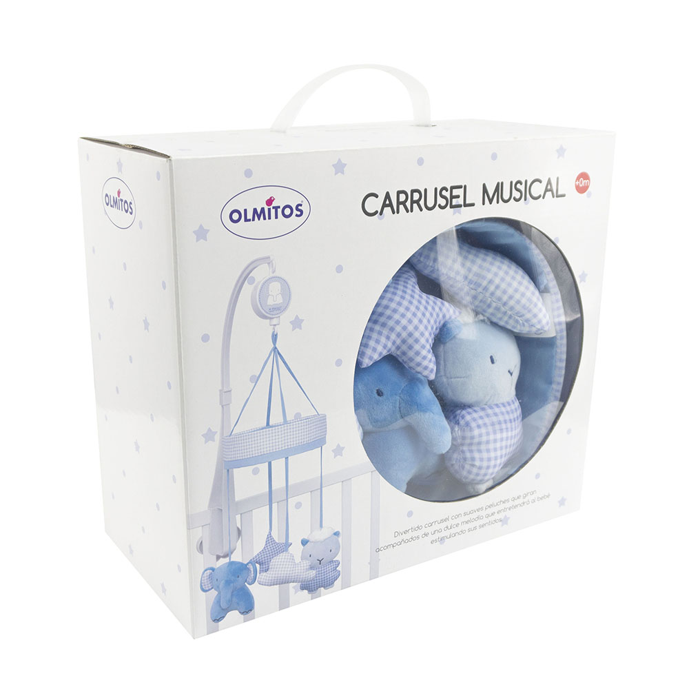 Olmitos Music Mobile Blue Elephant features four soft plush animals that gently rotate to soothing melodies, creating a calming nursery environment for your baby. Designed to stimulate movement, sight, and hearing, this musical mobile encourages sensory development while helping newborns relax and fall asleep. Charming blue elephant theme adds a playful touch to any crib, making it both a decorative and functional nursery accessory.