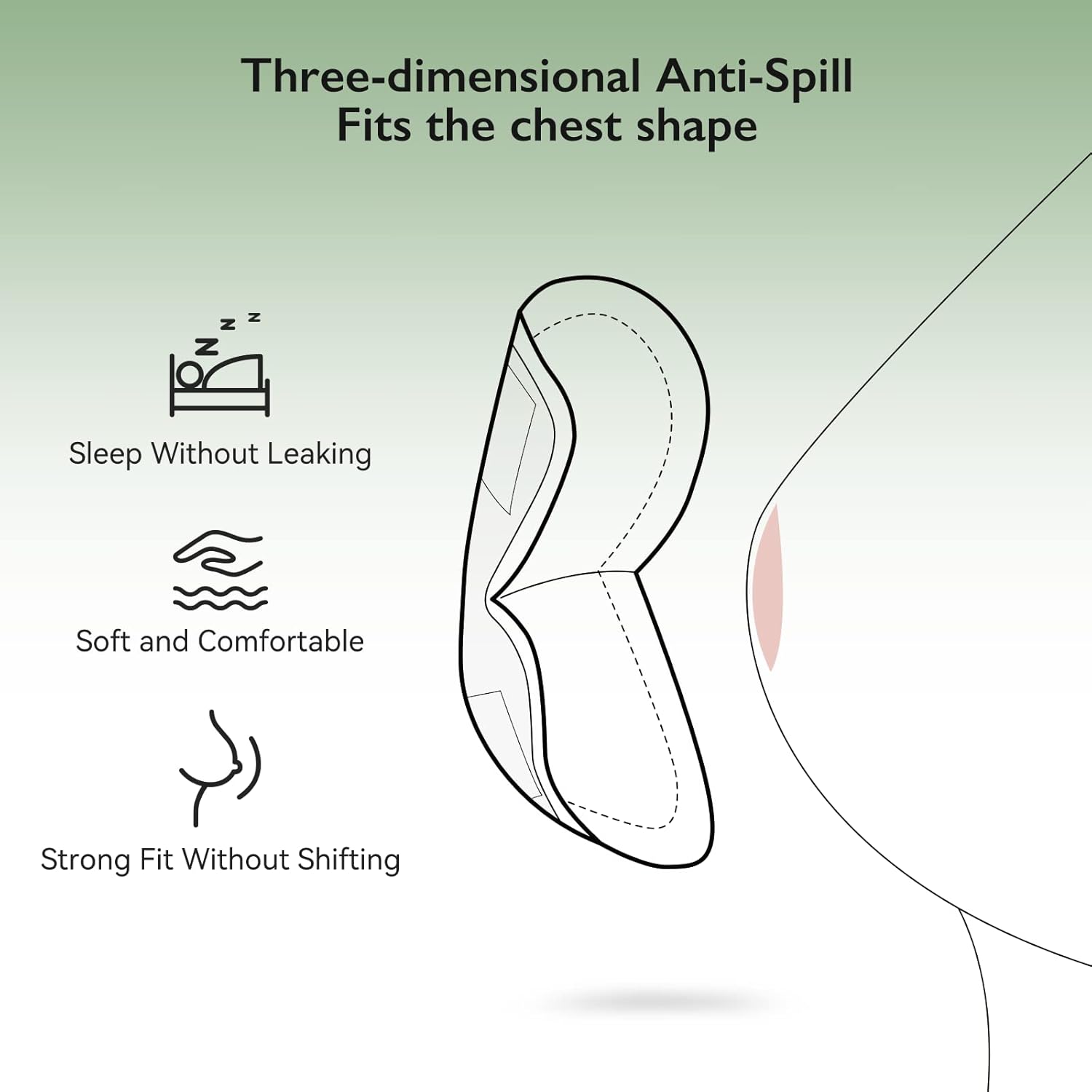 Upgraded anti-slip adhesive strips help keep the disposable nursing pads securely in place. The 3D contoured shape is designed to fit naturally against the breast, reducing movement and increasing comfort.