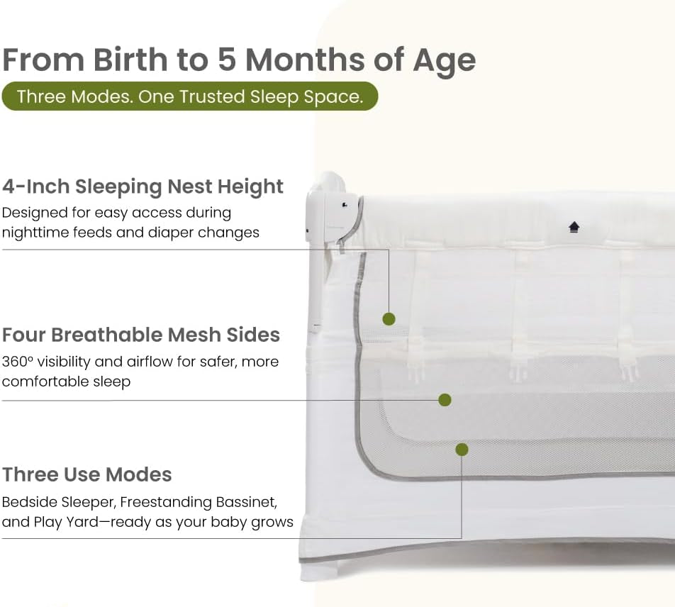 -3 Modes for Every Stage: Easily transform from bedside bassinet to freestanding baby bassinet or playpen. Ideal for sleep, naps, and playtime.