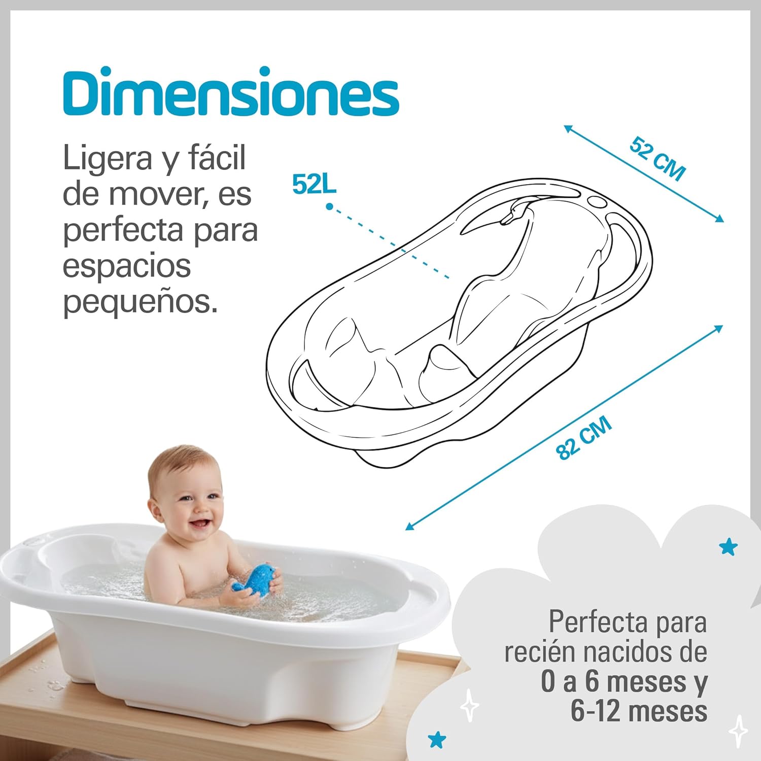 The anatomical tub is designed to cradle your baby’s body, ensuring a cozy and secure bath from newborn to toddler.